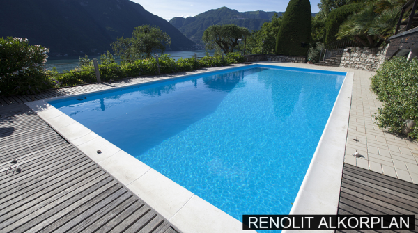 Einfarbige gewebeverstärkte Folie von 1,5 mm, lackiert, mit Pigmenten von hoher Beständigkeit und Weichmachern von langer Lebensdauer, die für eine lange Nutzungsdauer der Abdichtungsbahn im Pool sorgen.